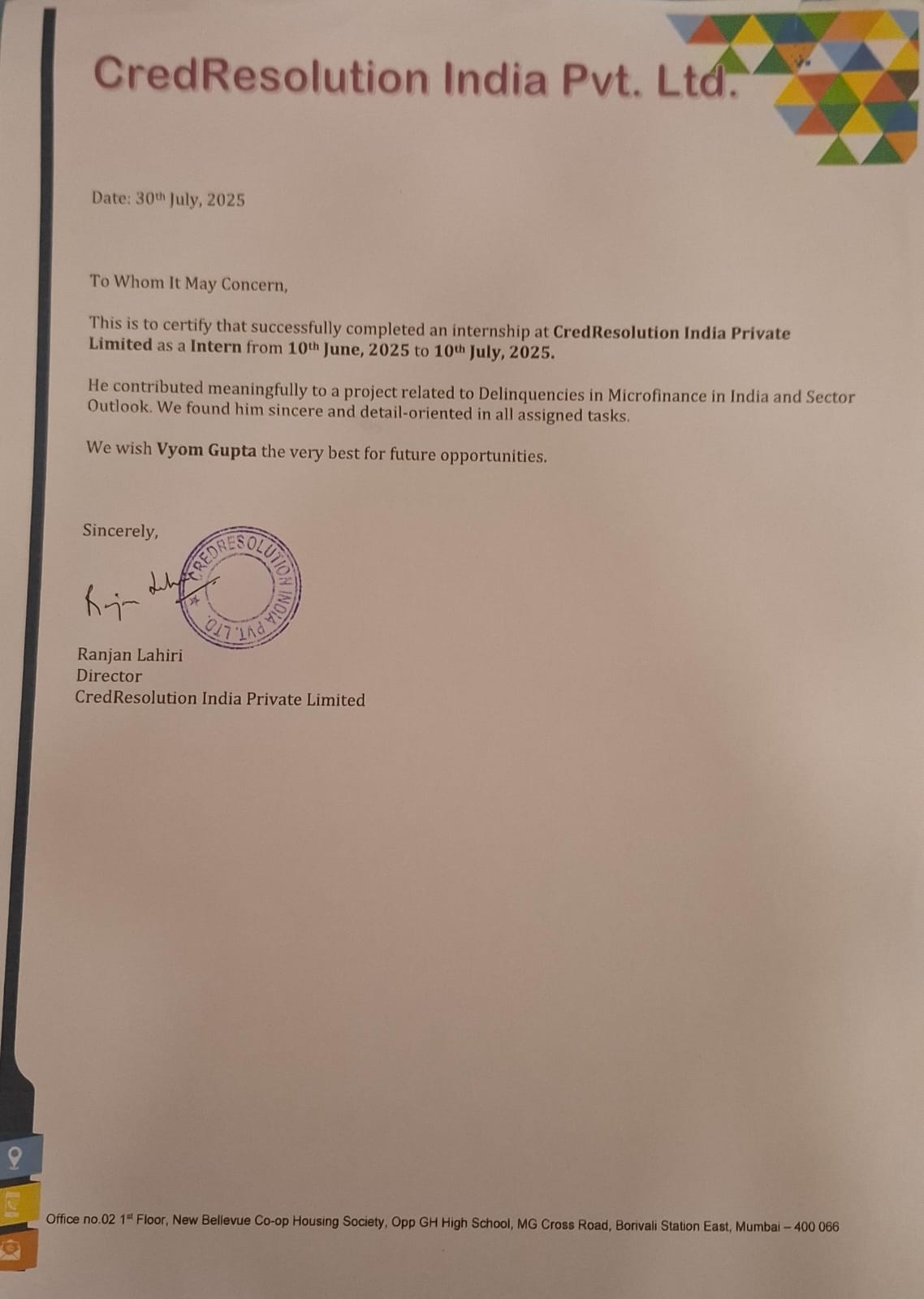 CredSolv (CredResolution) — Microfinance Risk Intern | June 10–July 10, 2025